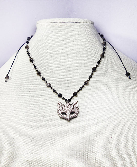Silver Obsidian Fox Necklace