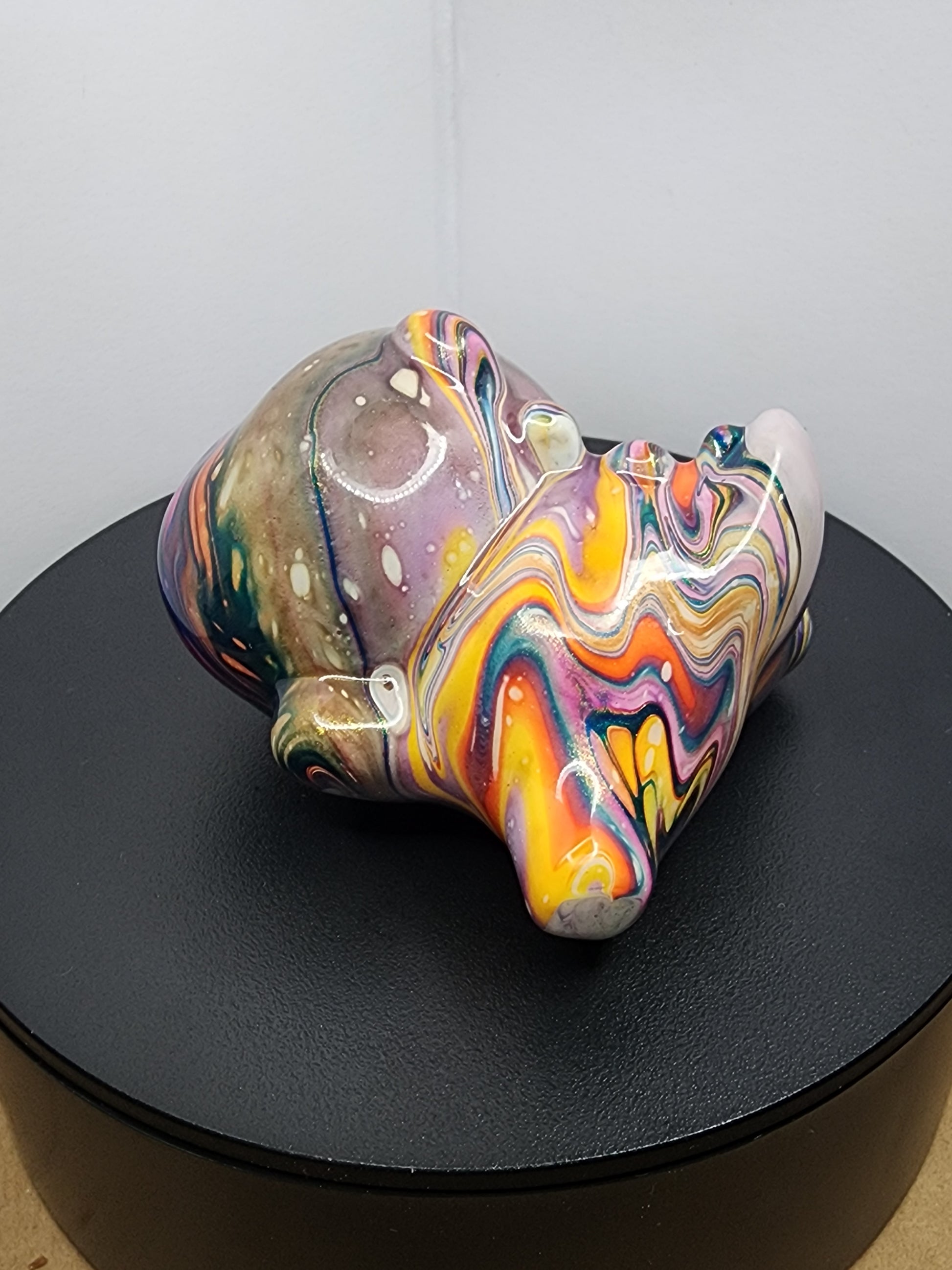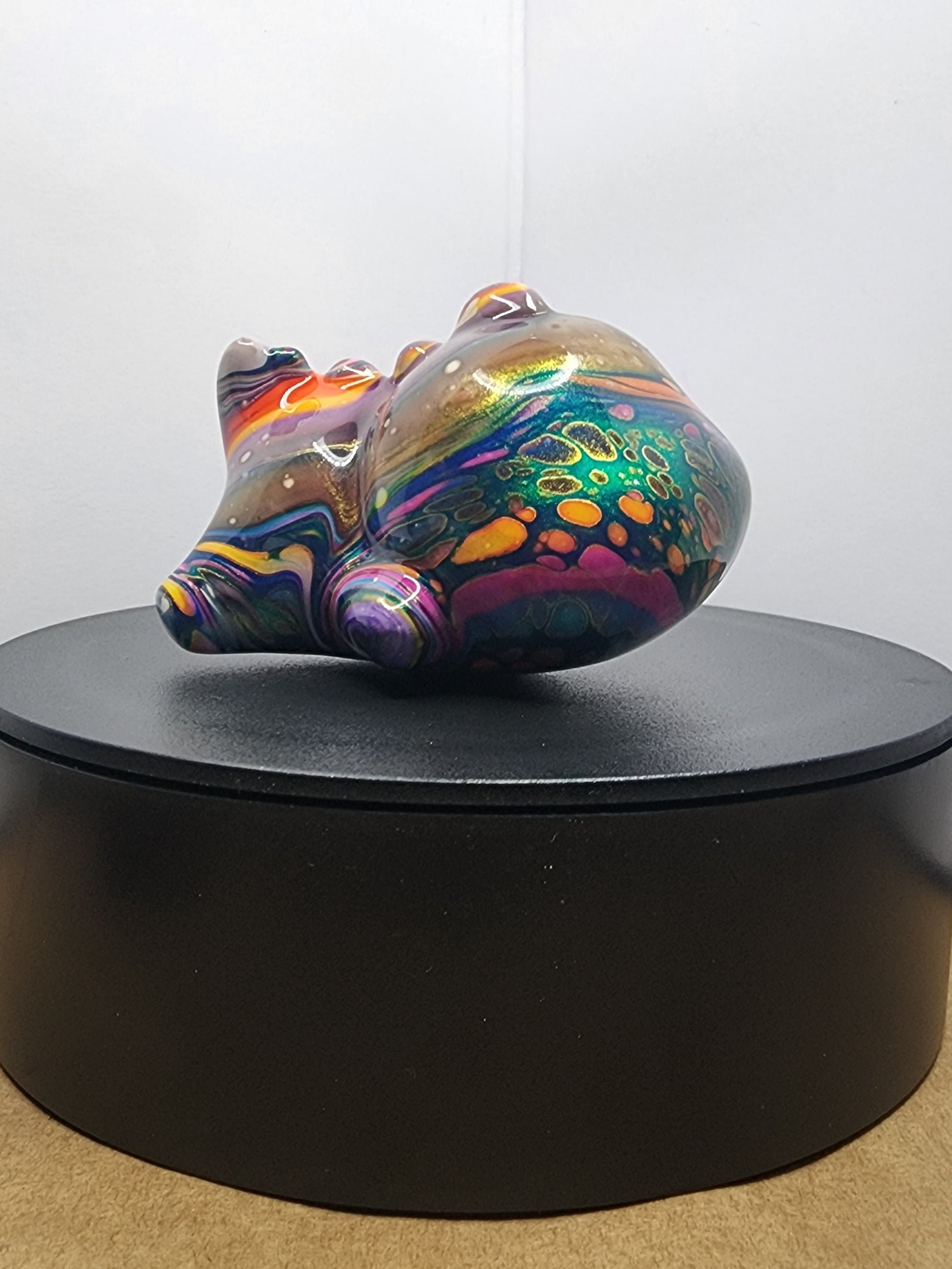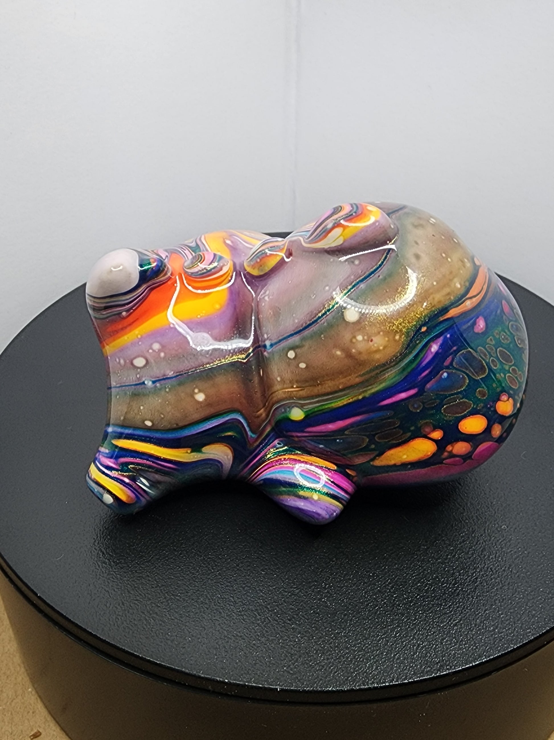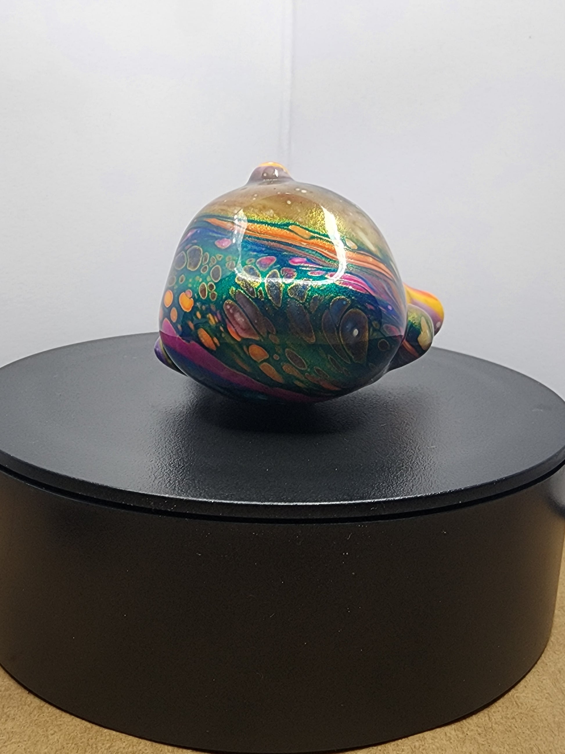 ~3" wide 1.75" tall lacquered and hand painted. Weight 3.8oz.