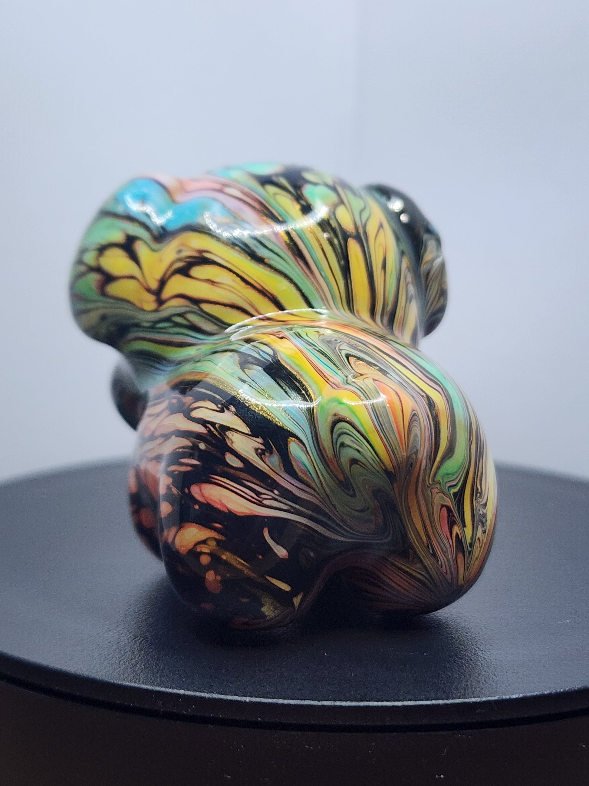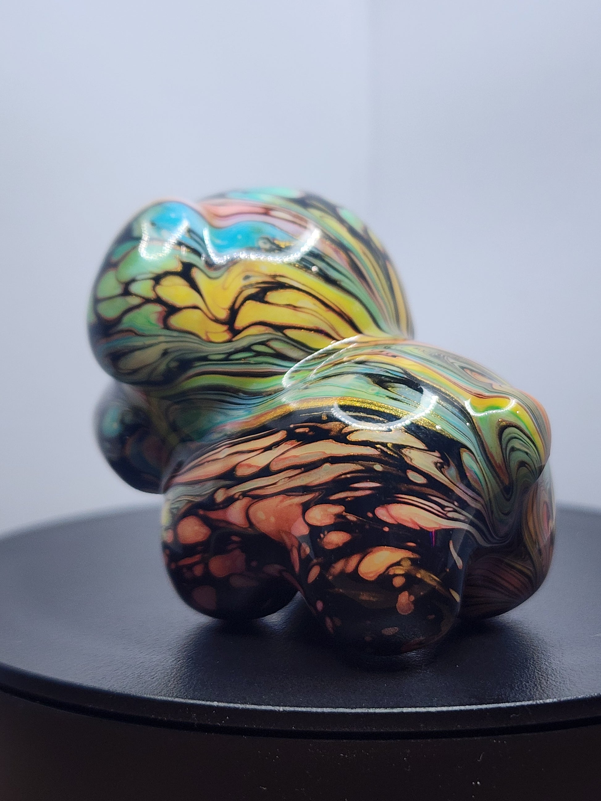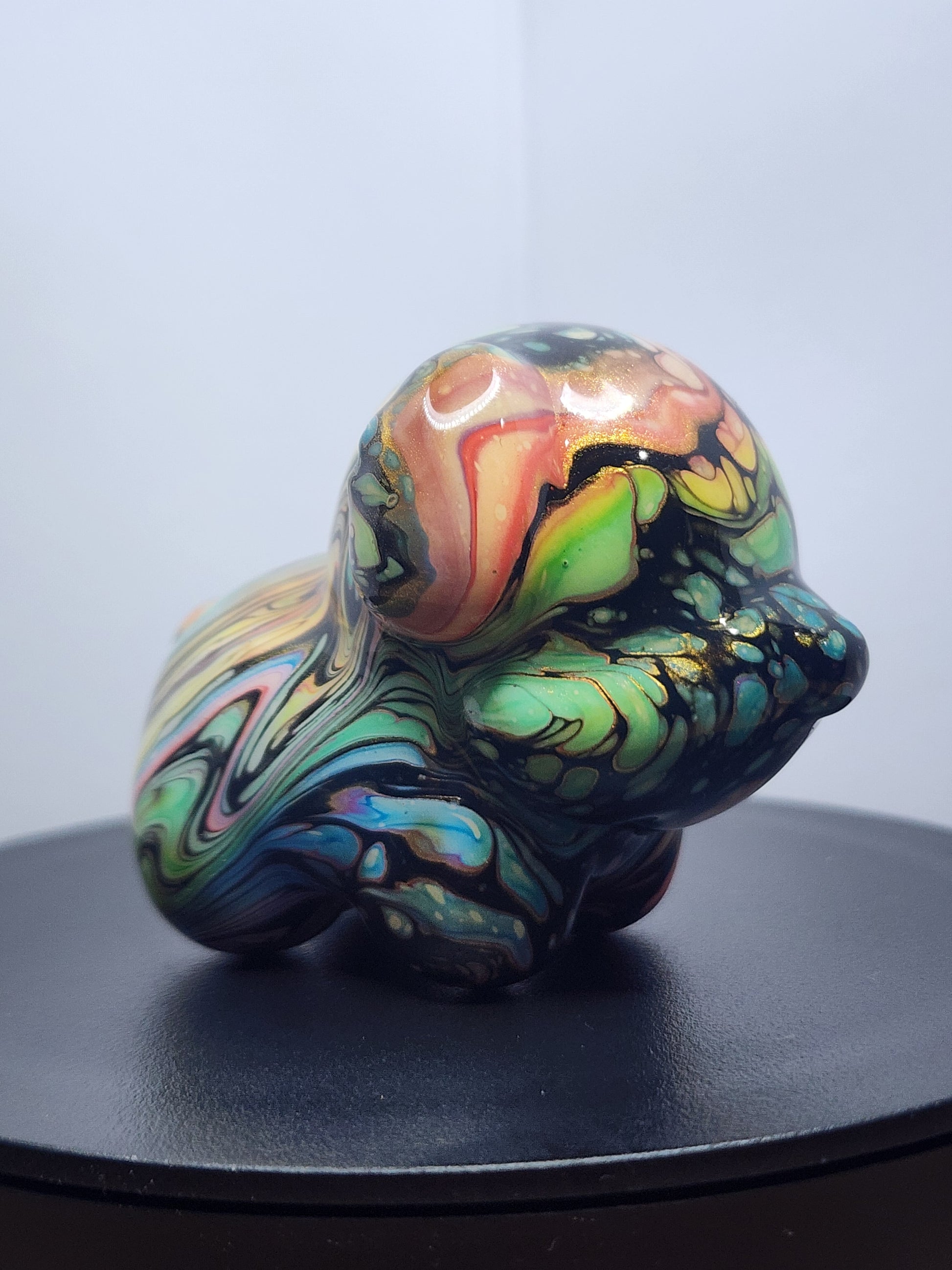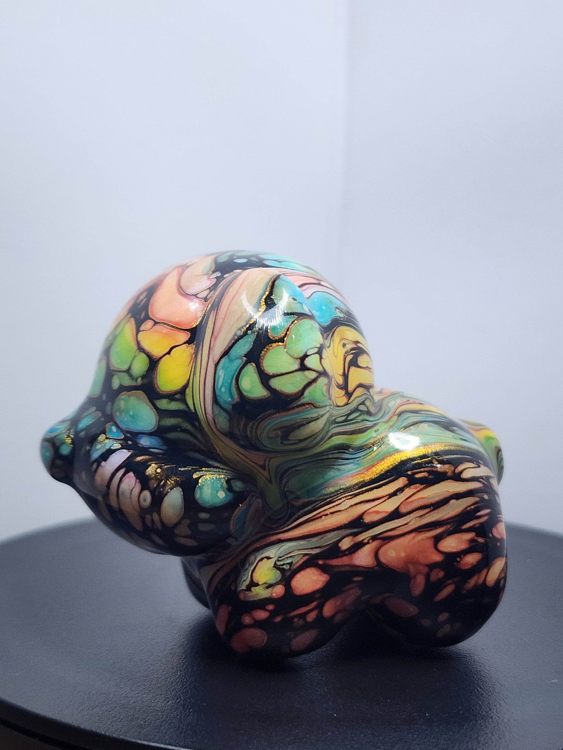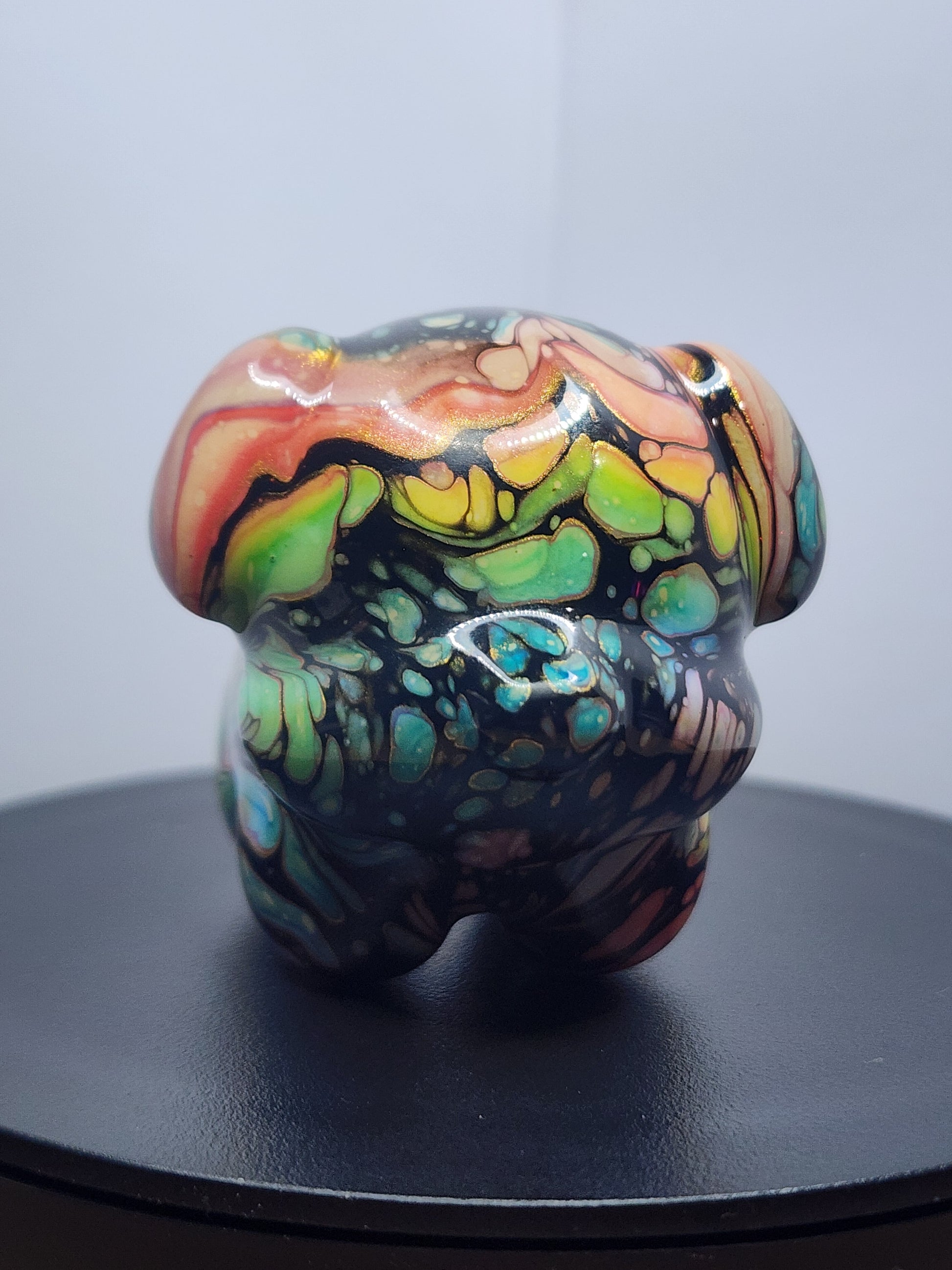 2.125" wide 2.5" tall lacquered and hand painted. Weight 3oz.